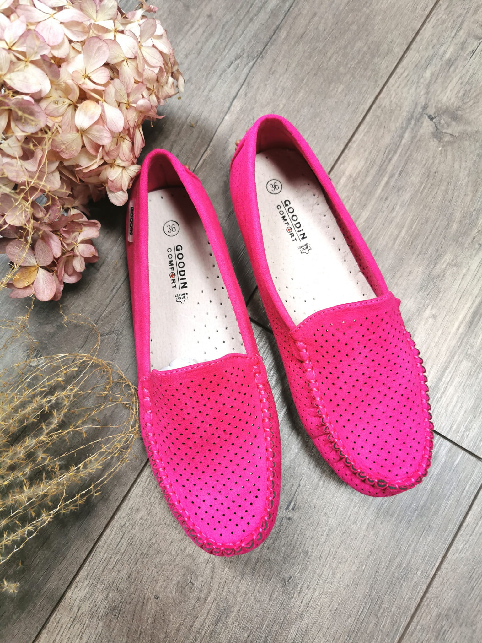 Piękne mokasyny w kolorze fuksja . Bardzo elastyczne mięciutkie i wygodne.
