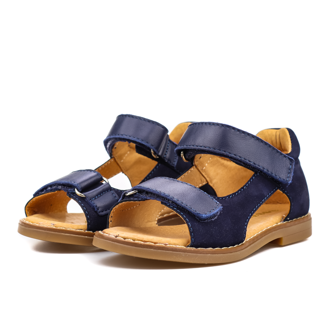 Sandałki w kolorze granatowym, wyprodukowane w całości ze skóry naturalnej.