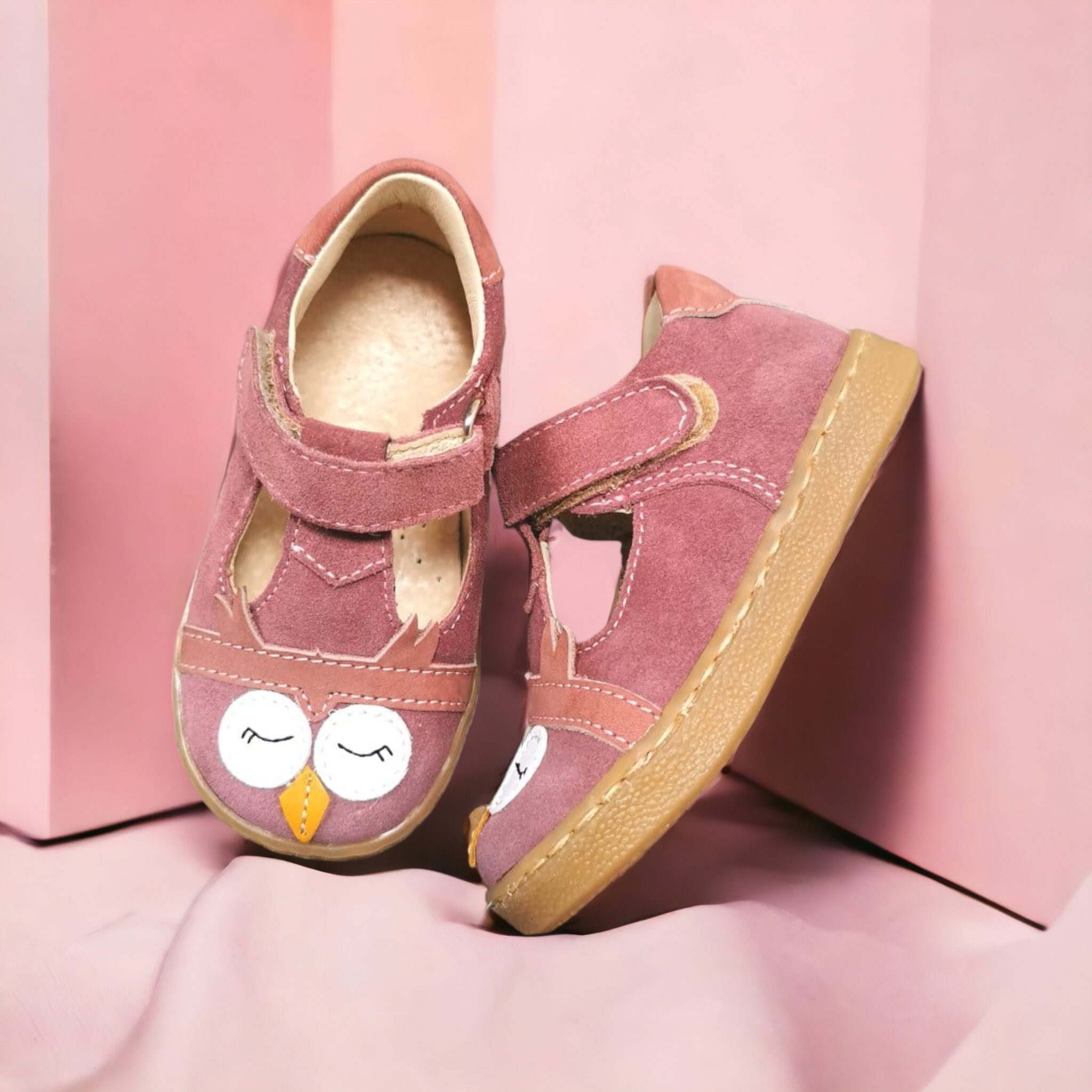 Prześliczne balerinki wykonane ze skóry naturalnej. Na czubku motyw sowy. Podwyższony zapiętek gwarantuje prawidłowe oparcie dla małej stopy. Posiadają skórzane, wyprofilowane wkładki oraz elastyczne podeszwy.