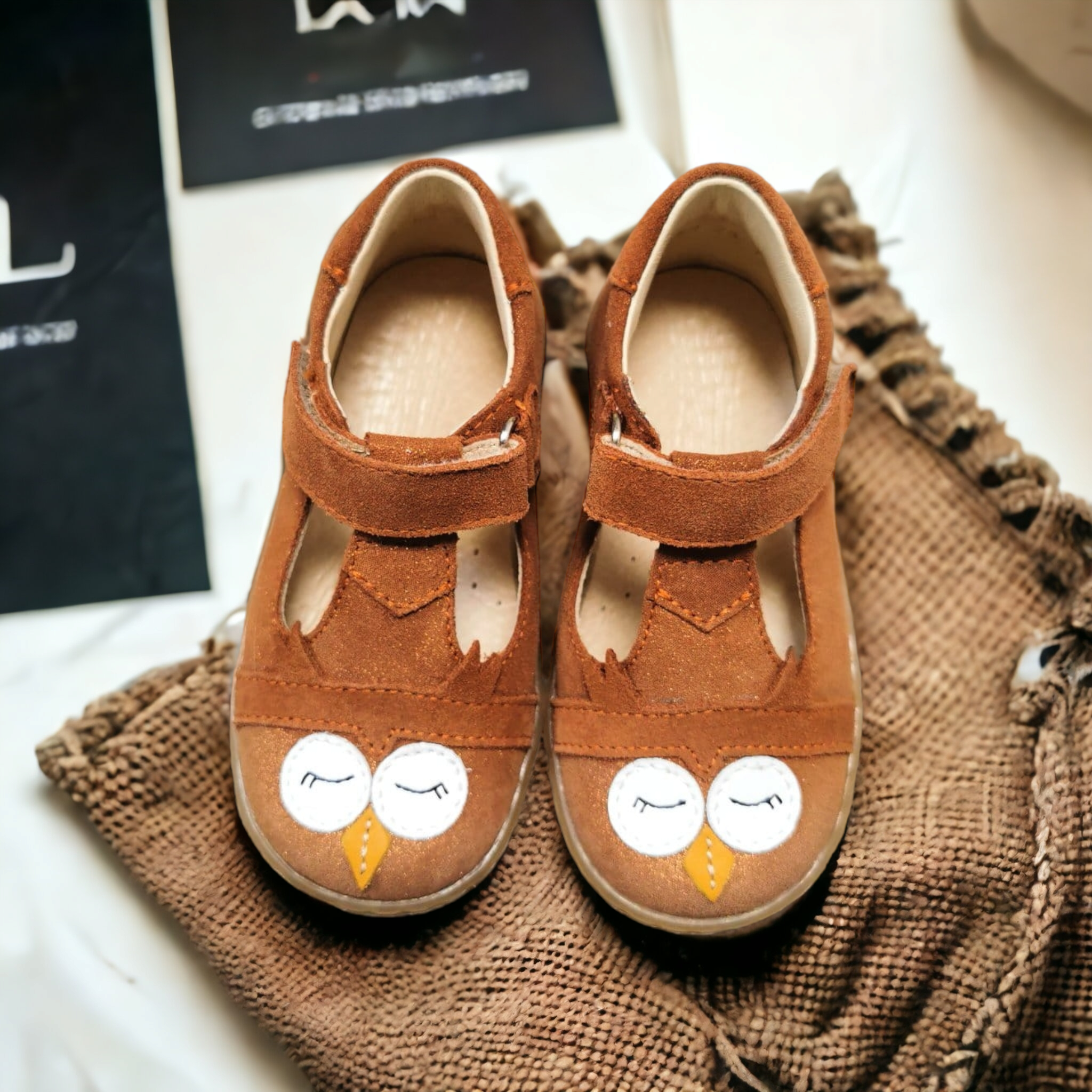 Prześliczne balerinki wykonane ze skóry naturalnej. Na czubku motyw sowy. Podwyższony zapiętek gwarantuje prawidłowe oparcie dla małej stopy. Posiadają skórzane, wyprofilowane wkładki oraz elastyczne podeszwy.
