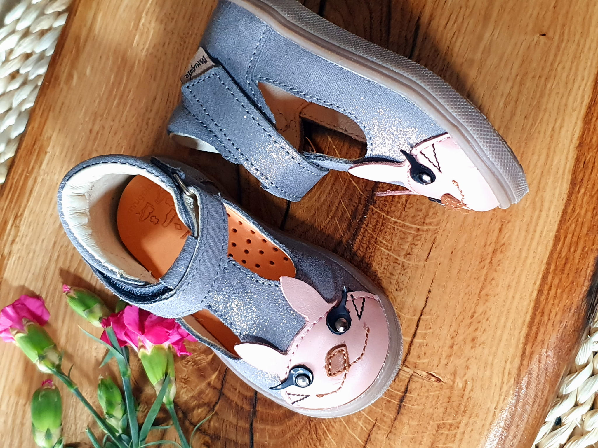 Wierzch: skóra welurowa w kolorze szarym pokryta połyskującym pyłkiem